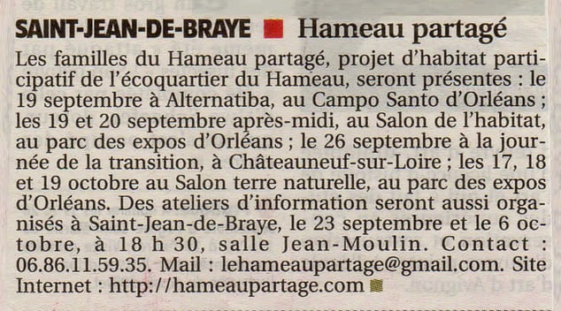 Article paru dans le journal LA REPUBLIQUE DU CENTRE - Publié le 17 Septembre 2015