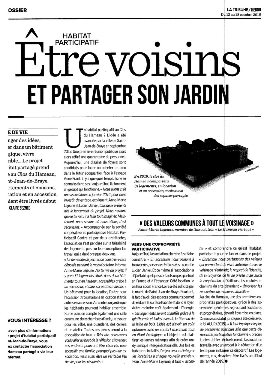 Article paru dans le journal LA TRIBUNE HEBDO - Publié le 12 Octobre 2016