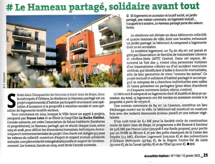 Article paru dans le journal ACTUALITÉS HABITAT - Publié le 15 Janvier 2022