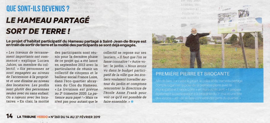Article paru dans le journal LA TRIBUNE HEBDO - Publié le 14 Février 2019